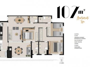 São 3 tipos de plantas para melhor atender, com 85m², com 2 suítes, 97m² com 3 dormitórios sendo 1 suíte e 107m² com 3 suítes, todas com opção de personalização.