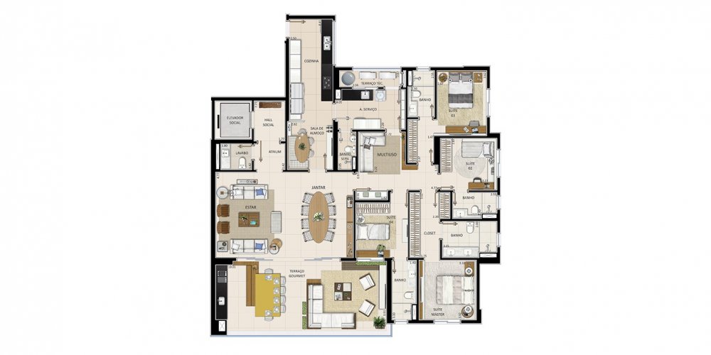 • Área Privativa: 237,86 m²