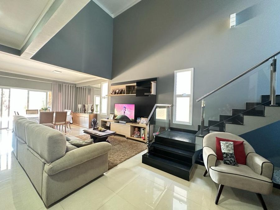 Pronto Para Morar, com garagem para 4 carros, sendo 2 cobertos. Sala 3 ambientes com pé direito duplo, lavabo, cozinha planejada fechada, área de serviço, 3 suítes com armários, varanda gourmet com armários e churrasqueira, além da piscina e paisagismo.