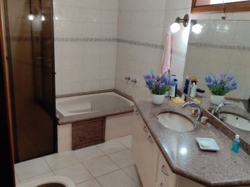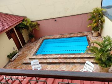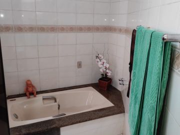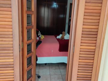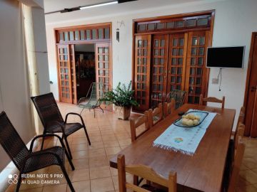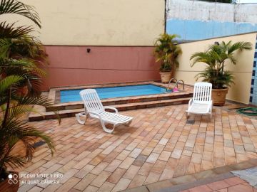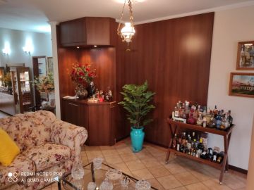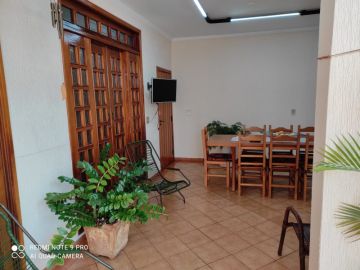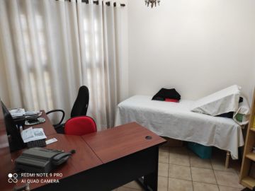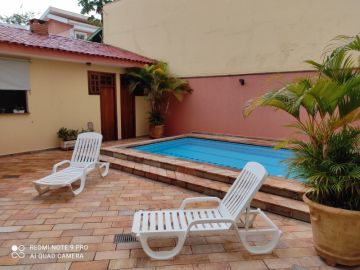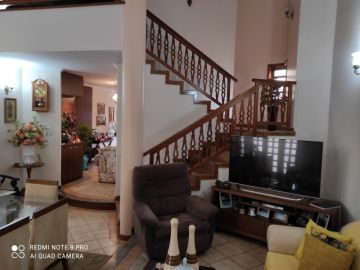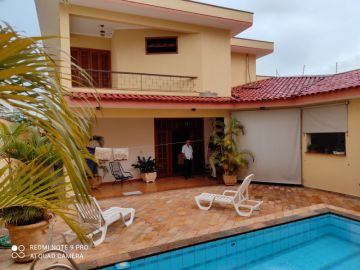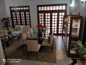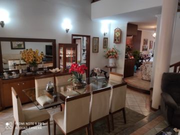 Casa sobrado. 3 suítes, 1 closet, 1 escritório, 1 lavabo, 2 salas de estar, 1 sala de tv, 1 sala de jantar, cozinha, lavanderia, 1 dormitório de empregada com banheiro, varanda com área gourmet e churrasqueira, piscina com banheiro masculina e feminino, corredor nas laterais. Portas e janelas de madeira em mógnos, vagas para 4 carros. Excelente ponto comercial, escritório de advocacia, clinicas.