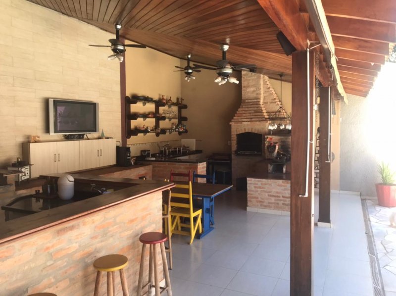 Casa em condomínio fechado ( estação primavera) 900 m2 terreno Aproximadamente 320 m2 construção 4 vagas na garagem ( 2 cobertas ) 4 quartos ( 2 suítes ) 6 banheiros Sala de jantar e Tv Cozinha com dispensa Armário externo para guardar produtos Lavanderia Amplo espaço gourmet ( fogão a lenha , churrasqueira , fogão a gás , pias , armários , dois banheiros , Tv , bar , freezer , máquina de gelo, chopeira ) Piscina 18 m2 Banheira Sauna a gás.