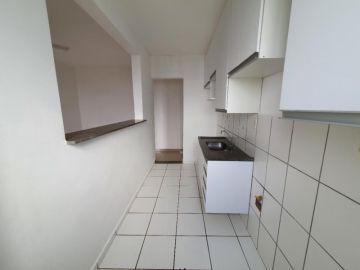 2 dormitórios, sala, cozinha, banheiro social, O prédio tem elevador, andar intermediário,