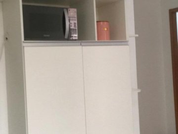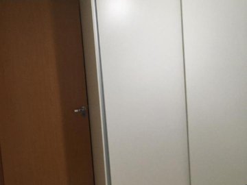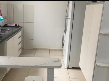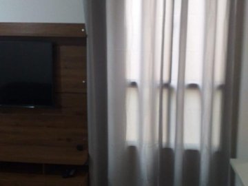 02 dormitórios com armários, banheiro social com box e gabinete, sala de TV, sala de jantar, cozinha planejada com armários e área de serviços com armários. Gesso no teto em todo apartamento. Móveis planejados na sala, cozinha, banheiro social. Piso cerâmico em todo apartamento. Condomínio 275,00 incluso água e gás