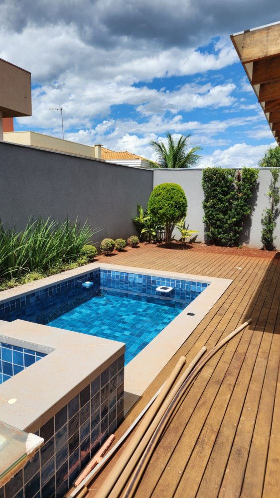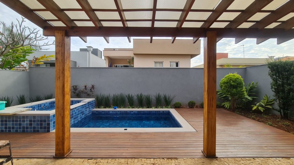 Espaço gourmet com churrasqueira e piscina, corredor lateral, 4 vagas, sendo 2 cobertas.
