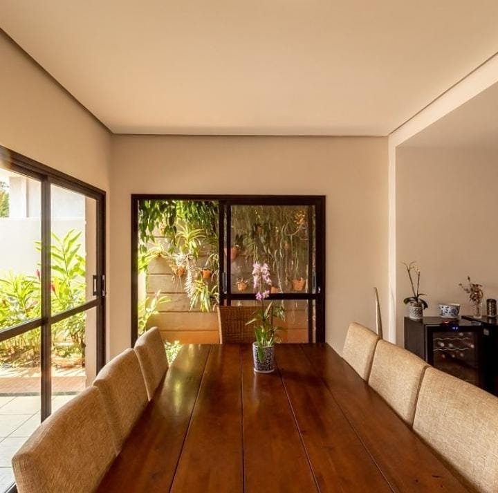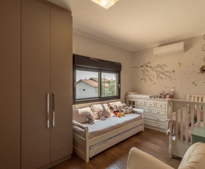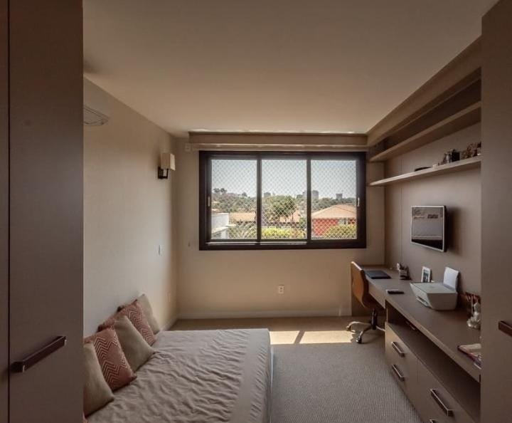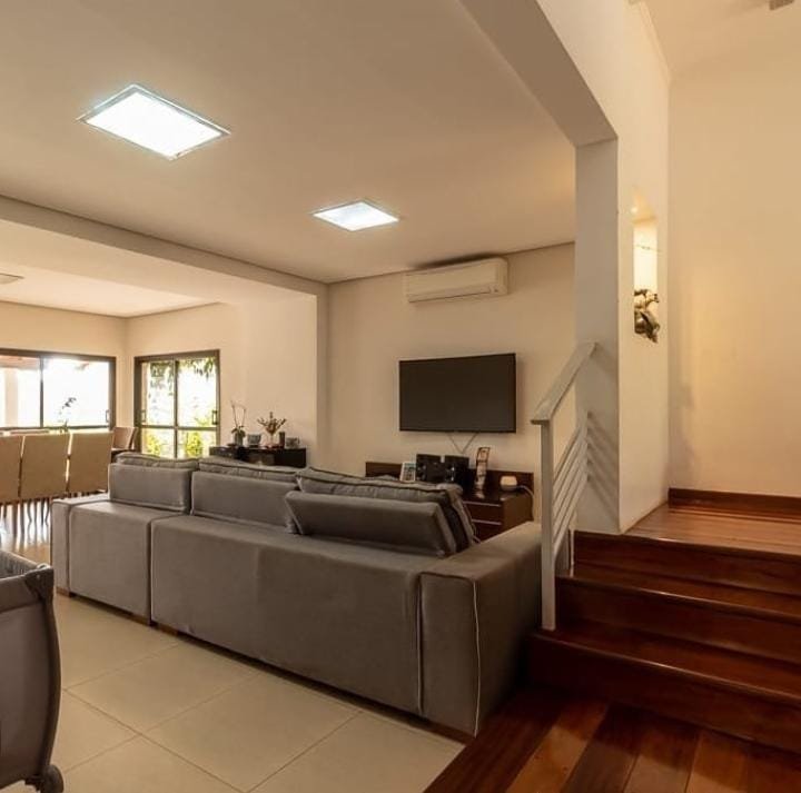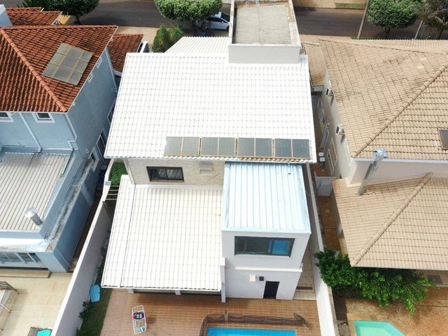 Na parte de baixo: 1 suíte, cozinha kitchens, rica em armários planejados, todos os comodos climatizados com ar inverter, piscina, janelas em pvc automatizadas recem instaladas com garantia de 5 anos (data da entrega 20/08). Geração de energia fotovoltaica (intelbras)de aproximadamente 2000kwh por mês instalada em junho/2021 com 25 anos de garantia. Sistema de câmeras.