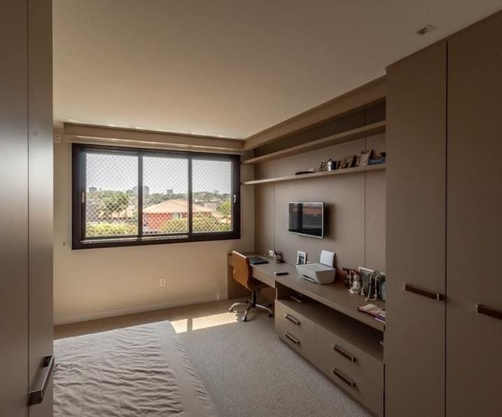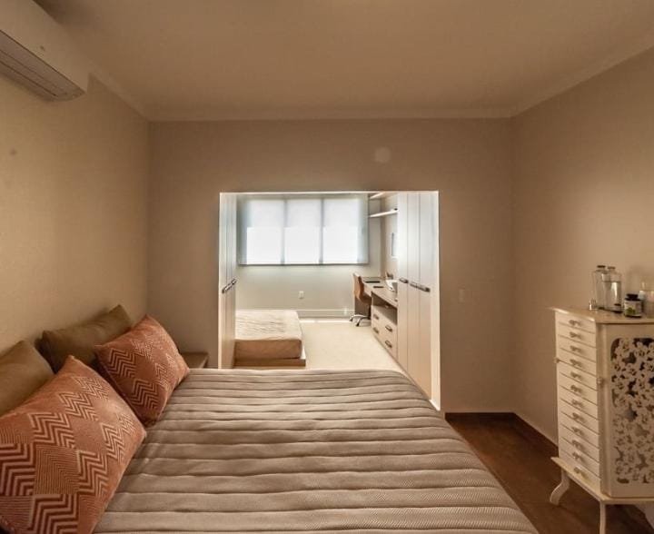 Na parte de cima conta com: 1 suíte master muito interessante com hidro, closet e um espaço que pode ser usado como sala de tv ou escritório e 2 dormitórios com 1 banheiro compartilhado no meio dos dois quartos( tipo suíte Americana)