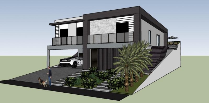 Garagem para 2 carros, sala 3 ambientes, cozinha com ilha, área de serviço, despensa, varanda gourmet, lavabo e 3 suítes, sendo 2 com closet. Área externa conta com jardim, espaço de sol e piscina. No primeiro piso, há além da garagem um amplo depósito com espaço para elevador, escritório interno e externo.
