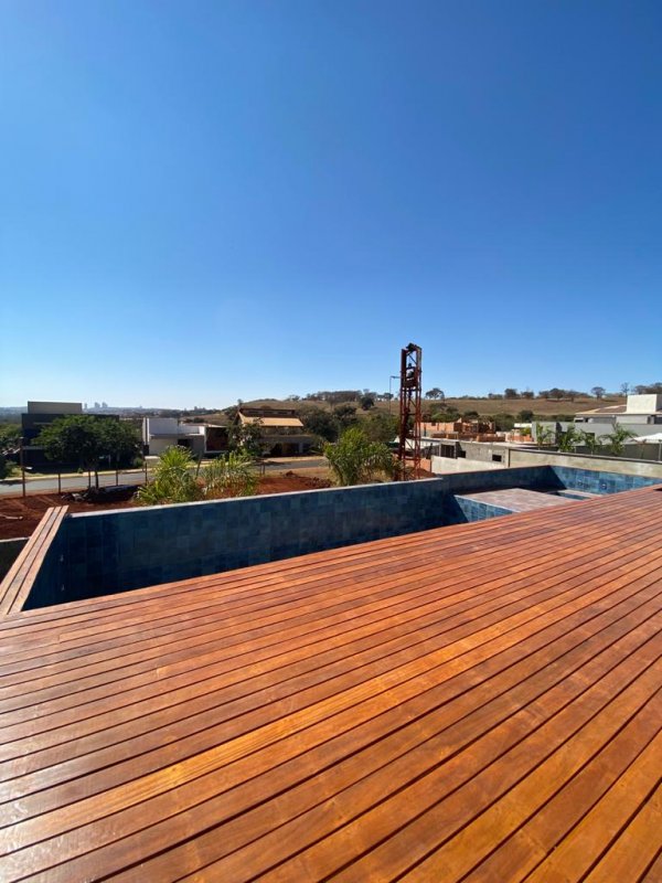 Área do terreno: 527,24 m2 / Área construída: 402,00 m2 em 3 pavimentos: Pavimento Superior: 3 suítes, sendo a máster com closet e hidro, home-cinema no mezanino que tem um terraço voltado para os fundos com linda vista para a cidade, hall íntimo com roupeiro, home-office com sacada voltada para a frente, com vista para a rua; Pavimento térreo: Vagas para 6 carros, sendo 3 cobertos, hall social, escritório e lavabo reversíveis para suíte de hóspedes (o lavabo conta com um box discreto), sala 2 ambientes, cozinha com ilha que pode ser integrada ao ambiente de jantar por duas portas de correr, varanda, espaço gourmet, vestiário, deck, piscina com prainha e hidro, despensa, lavanderia, banheiro de serviço e área de serviço para varais. Pavimento inferior: Salão de ginástica com lavabo embaixo da varanda, suíte de empregada embaixo do espaço gourmet e adega embaixo do escritório, esta com acesso pelo ambiente de estar da sala.