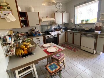Piso inferior: 2 salas separadas - com lavabo - cozinha planejada e porta blindex com saída para a piscina - vestiário - outra sala de 3 ambientes (home + mesa 8 pessoas + Bar + mini cozinha), tudo climatizado com split fujitsu inverter, e em todos os dormitórios e salas da casa - aquecedor solar e elétrico - área de serviço - dependência de empregada com banheiro. Piso em Granito