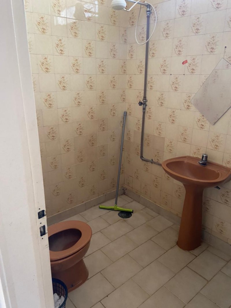 Térreo: com várias salas - 1 banheiro - cozinha e quintal - sem garagem, porém com estacionamento comercial em frente.