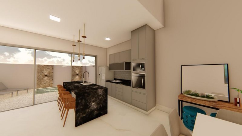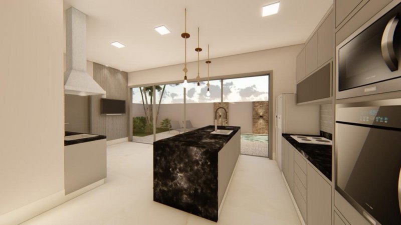3 suítes, 1 lavabo, cozinha gourmet, varanda gourmet, lavanderia, piscina com prainha, casa de máquina, sala 2 ambientes, garagem 4 carros.
