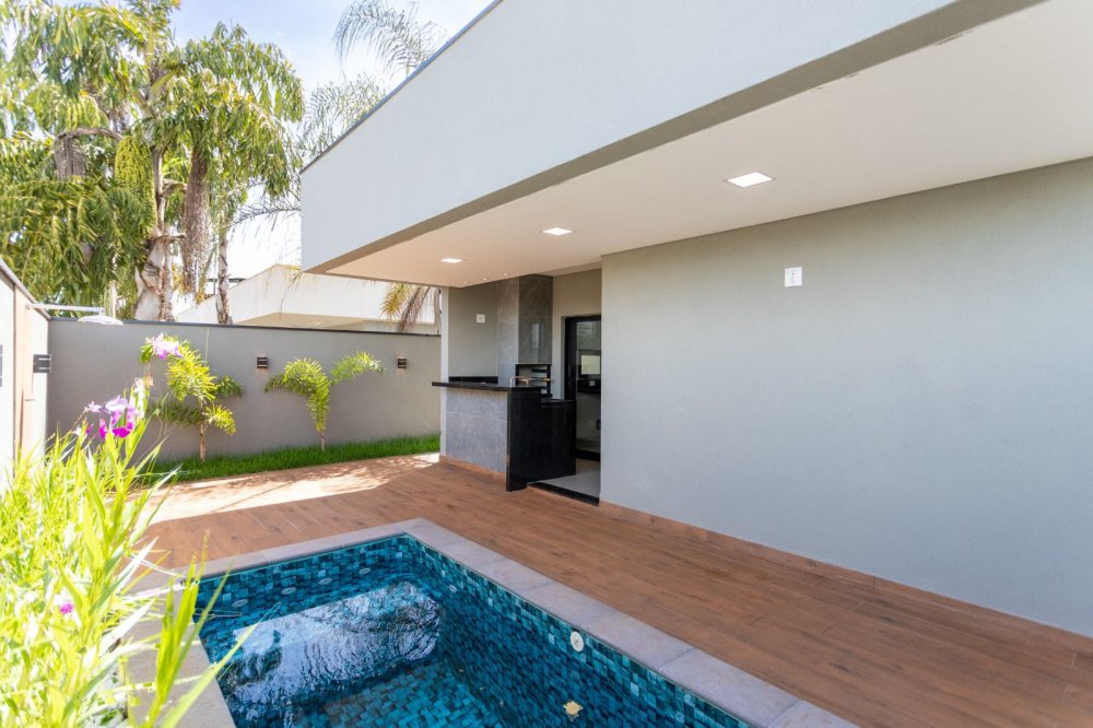3 suítes - master com closet , sala dois ambientes com pé direito 4,5m, cozinha, área gourmet com piscina e churrasqueira. Casa completa em armários e mobiliada. 4 vagas, sendo 2 cobertas.