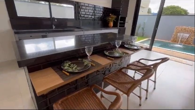 Casa térrea, 3 suítes, sendo a master com closet, sala 2 ambientes, cozinha integrada com a área gourmet, lavabo, 4 banheiros, piscina privativa. Entrega com armários na cozinha e banheiros. Energia fotovoltaíca e preparo de aquecimento.