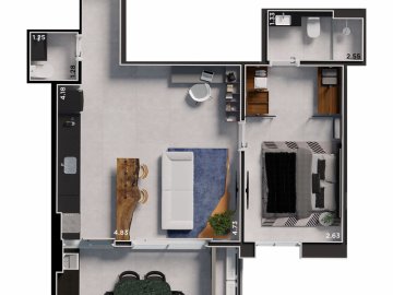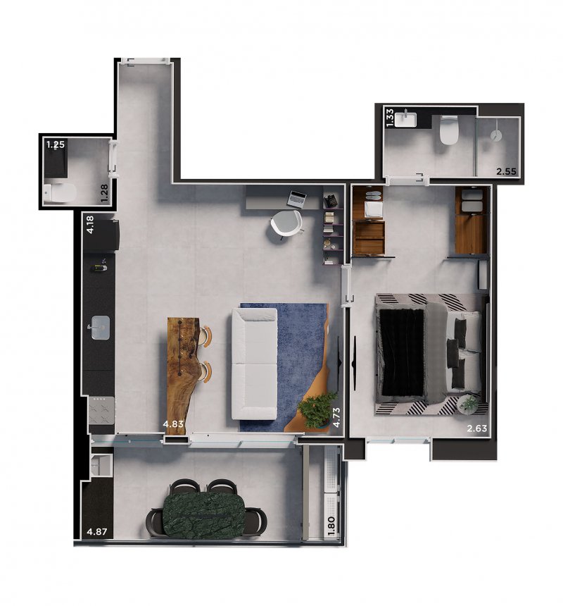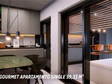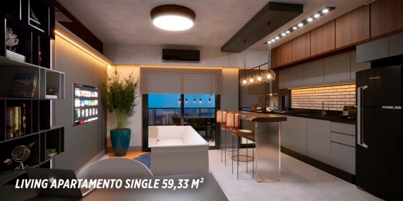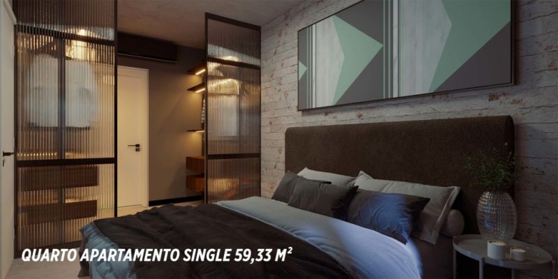 Apartamentos tipo single, com 1 suite mais lavabo, plantas de 59 a 63 m2;