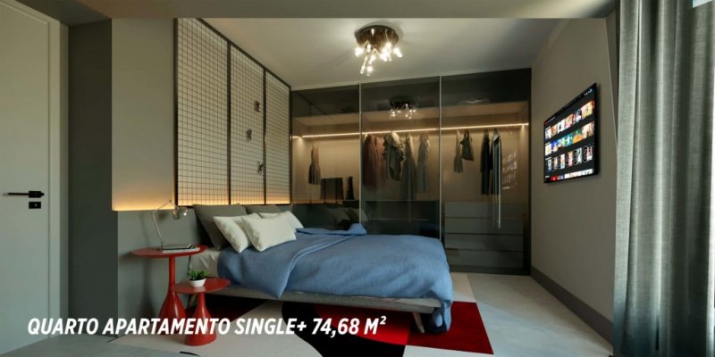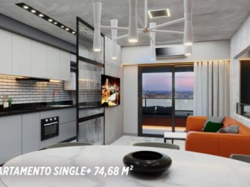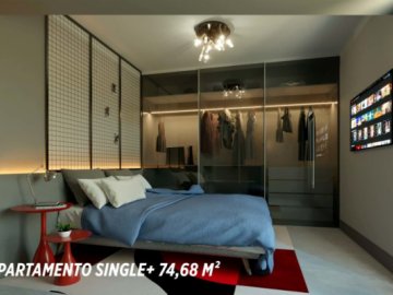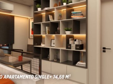 Apartamentos tipo single +, com 1 suite mais lavabo ou 2 dormitorios com 1 suite, plantas de 71 a 77 m2;