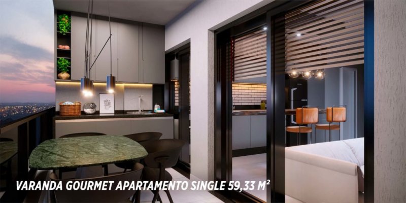 Apartamentos tipo single, com 1 suite mais lavabo, plantas de 59 a 63 m2;