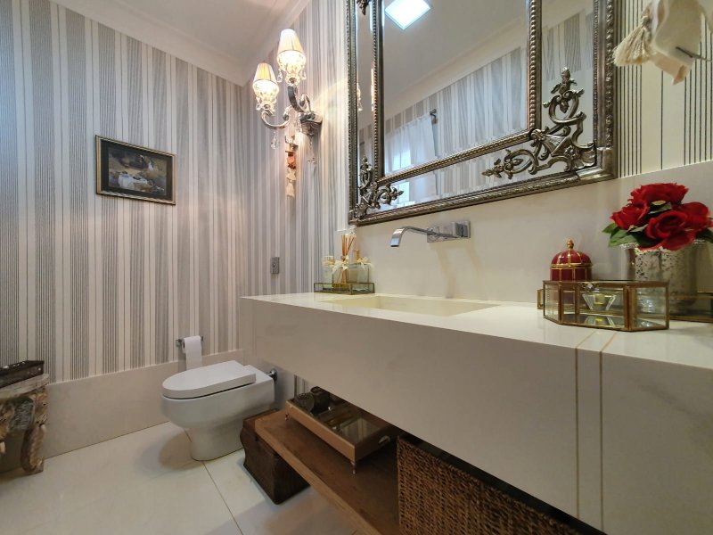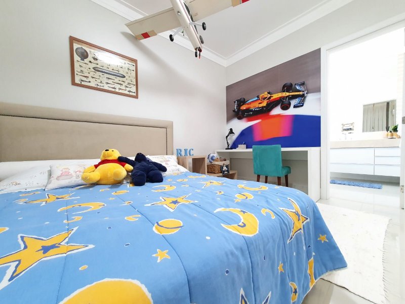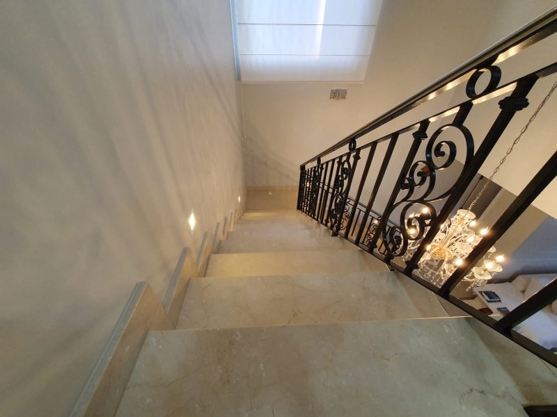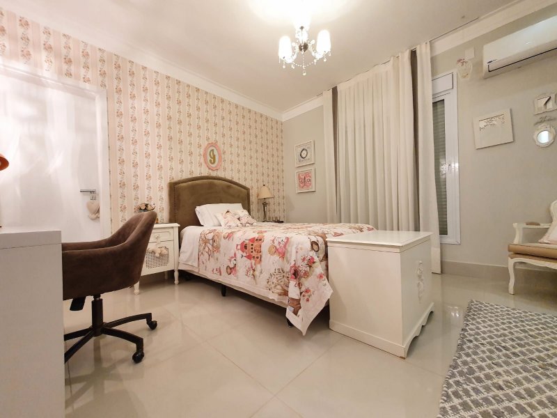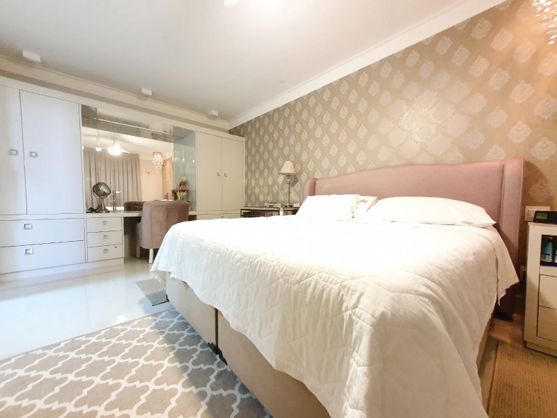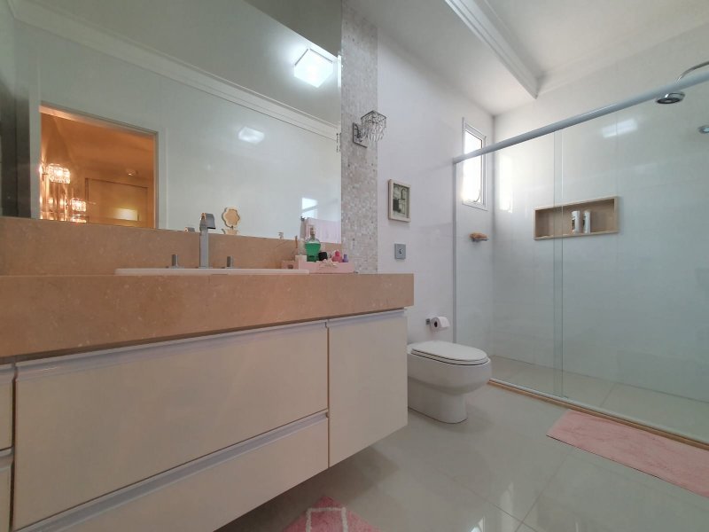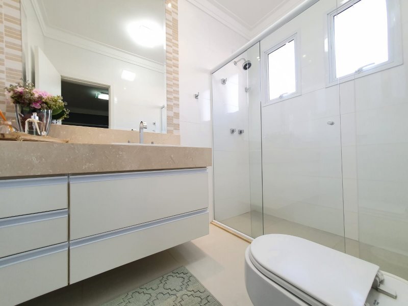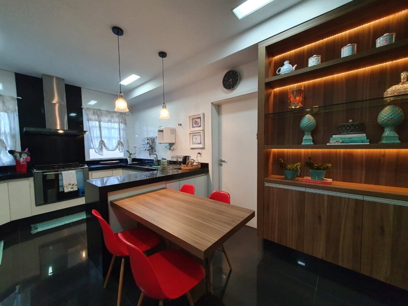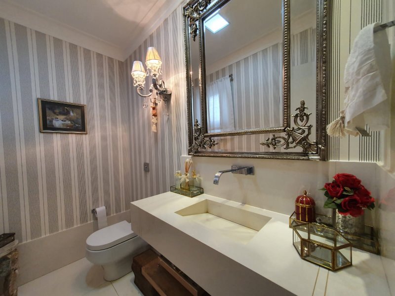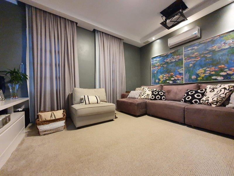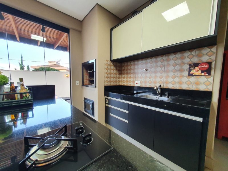 Casa com acabamentos de altíssimo padrão e muito bom gosto, janelas automatiza, corrimão ferro forjado, sala jantar e estar, home com telão, área churrasco com balcão refrigerado, piscina com aquecimento solar, e hidro. Jardim com irrigação automatizada, garagem para 6 carros coberta, portas em alumínio brancas e internas em pvc brancas.