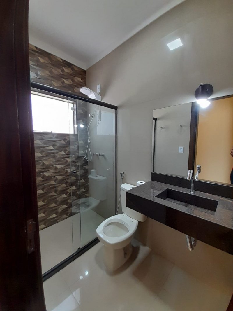 Diferenciais: casa recém-construída, com acabamento fino, cubas esculpidas em granito, pé direito da sala de 4,5 M, churrasqueira, ducha na área externa, garagem coberta, iluminação 100% pronta, portão eletrônico, jardinagem pronta.