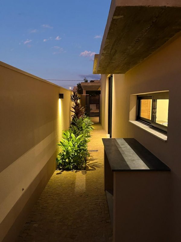 Sendo 3 suítes, a master com cuba dupla - - sala 2 ambientes integrada com a cozinha - bancada - despensa - lavanderia - área gourmet com churrasqueira - piscina - janelas automatizadas - paisagismo - armários - garagem para 4 carros.