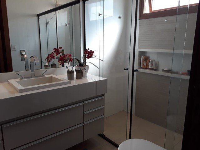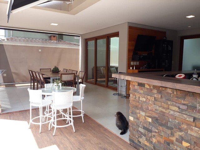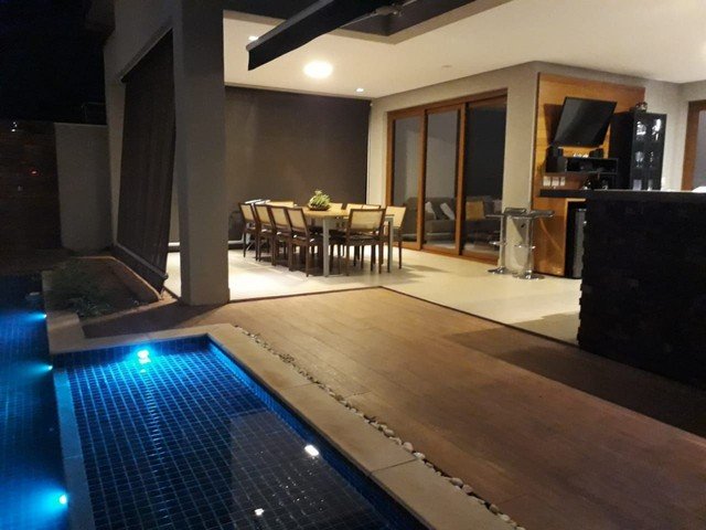 Sendo 3 suítes - sala dois ambientes - escritórios - cozinha - completa em armários - área gourmet com churrasqueira - garagem para 4 carros. Sistema de energia solar fotovoltaica - piscina aquecida.