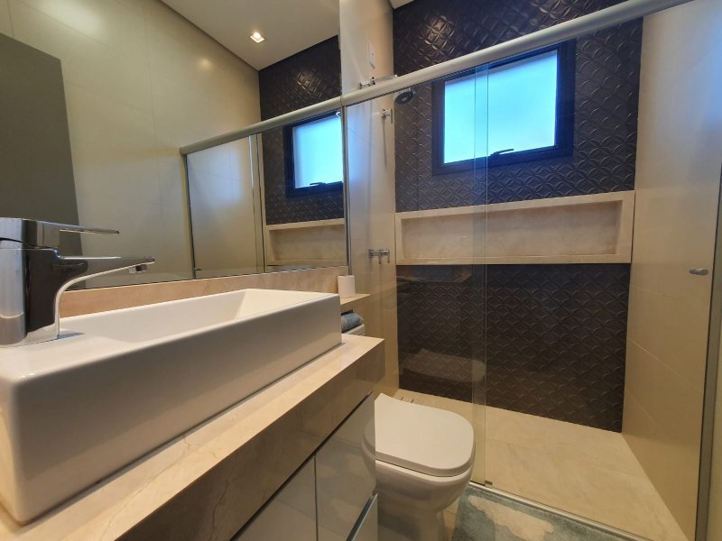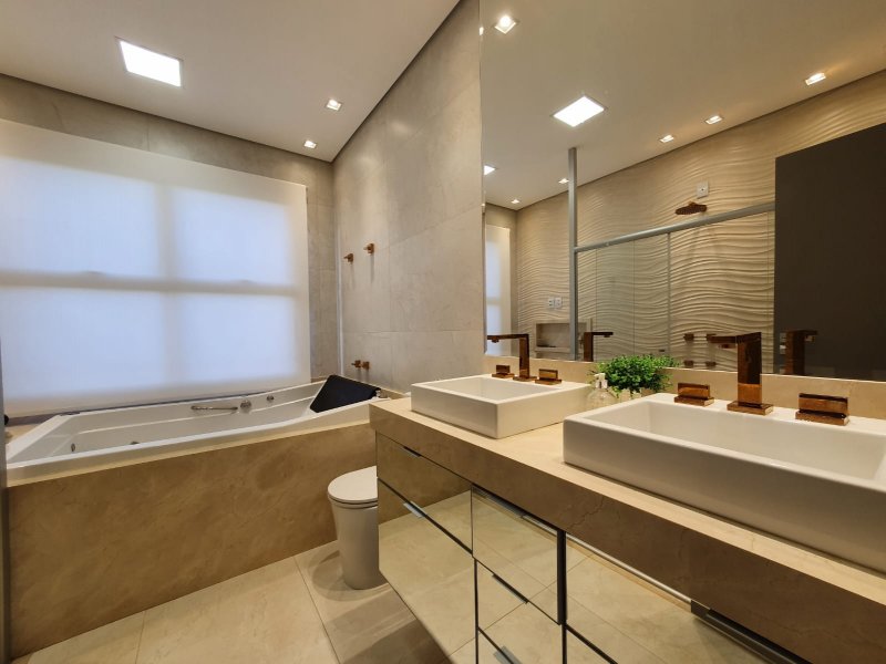 - Casa completa em acabamento de primeira linha, porcelanatos Portobello, escada em Mármore Travertino, portas em madeira maciça, armários dsilva, aquecimento solar, ar condicionado, metais e louças nobres, além de projeto luminotécnico e sonoro.