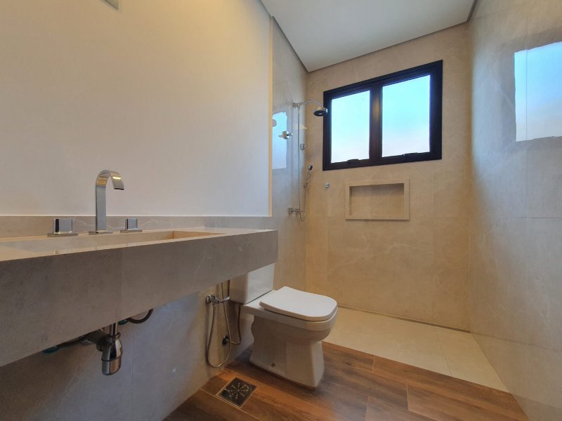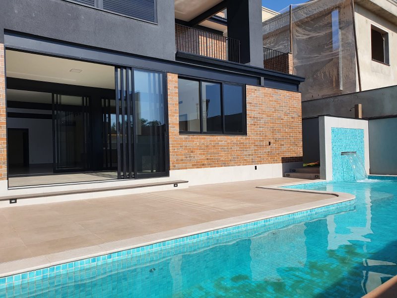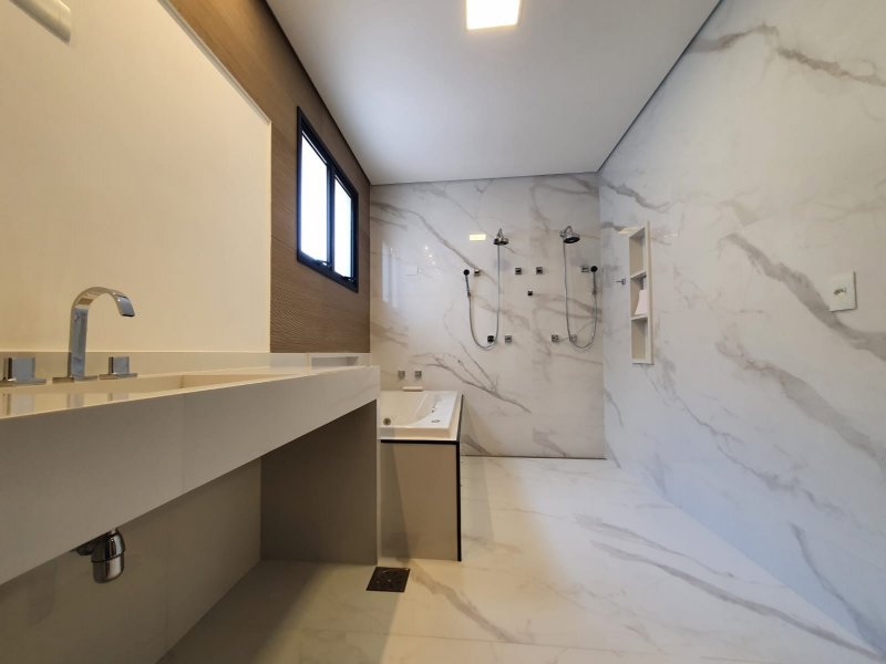 Detalhes do imóvel: 18 placas de energia fotovoltaica para 1.000 kW, 5 placas de energia solar para hidráulica, 38 placas de energia solar para aquecimento da piscina, 2 caixas d'água de 1.500 L (cada), 1 boiler de 1.000 L para chuveiros, 1 boiler de 800 L para cozinha, infraestrutura de ar-condicionado nos dormitórios, closet, sala, cozinha, terraço gourmet, escritório/suíte reversível, e portas com venezianas integradas e motorizadas.