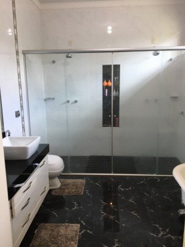 Casa principal: 3 dormitórios sendo 1 suíte master com closet, banheiro com 2 chuveiros e banheira - sala 3 ambientes com pé direito duplo - lavabo - cozinha planejada, forno e cooktop - ampla área de serviço - aquecimento solar - 9 aparelhos de ar condicionado.