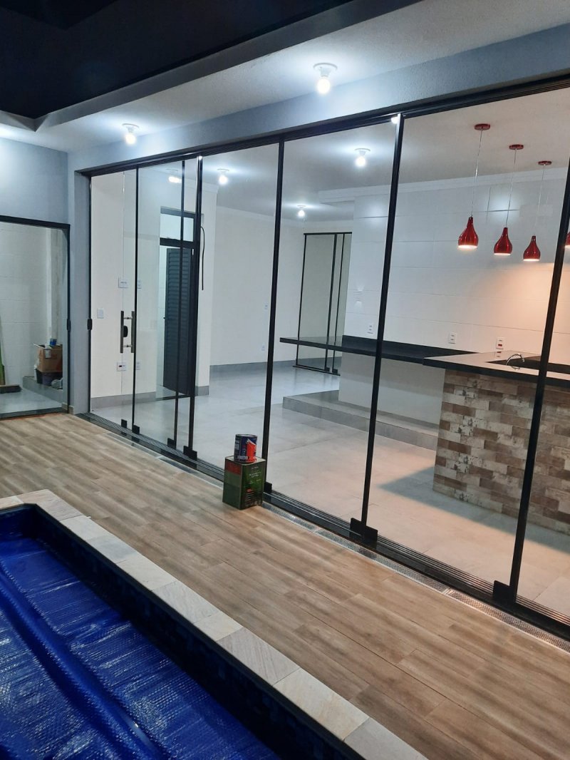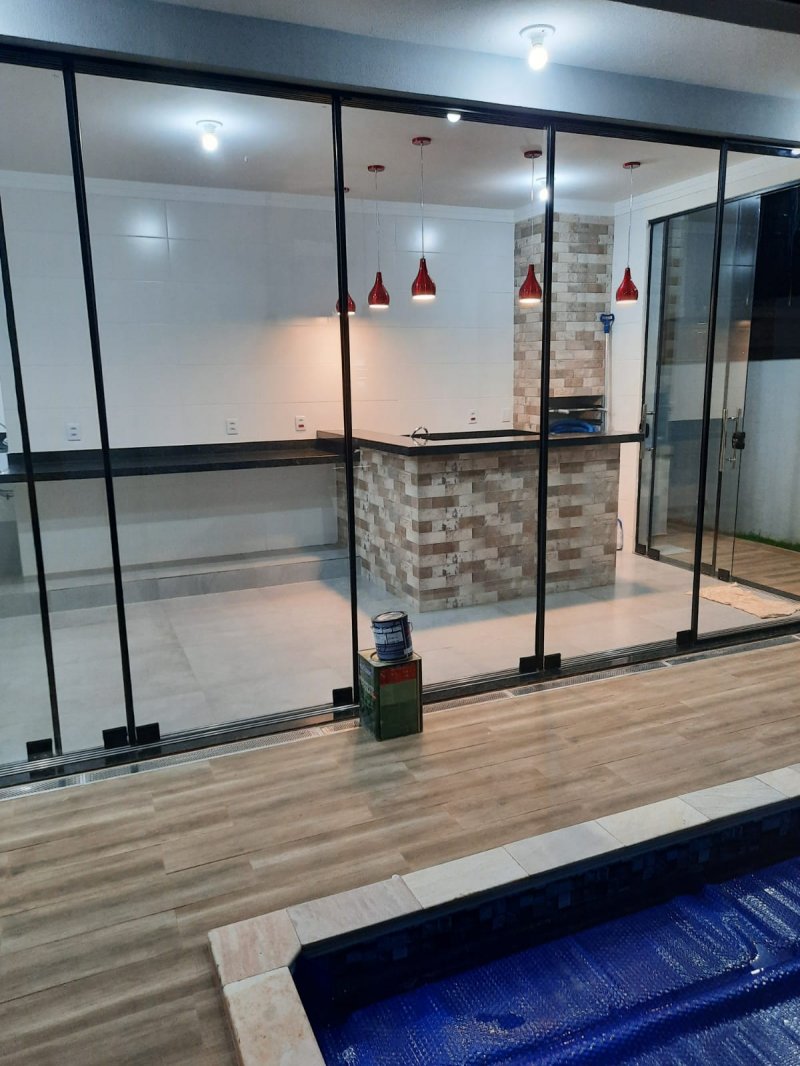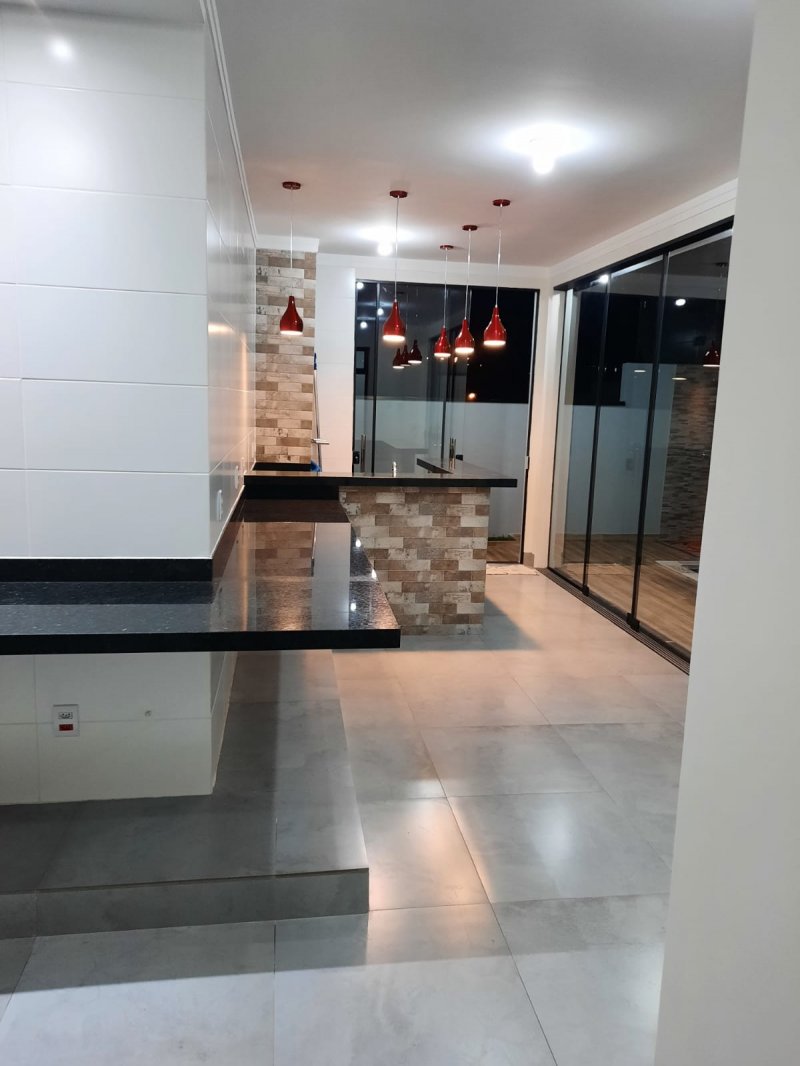 Com 3 dormitórios sendo 1 suíte e 1 demi suíte - sala dois ambientes com pé direito alto - cozinha planejada integrada com área de lazer - 2 lavabos e 2 banheiros - armários em todos os ambientes - garagem para 4 carros.