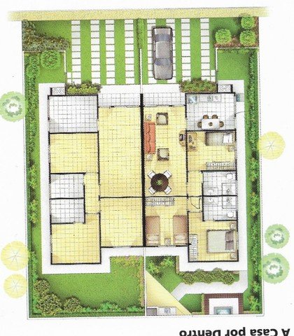Com 3 dormitórios sendo 1 suíte - sala 2 ambientes - copa cozinha planejada - 1 banheiro social - rica em armários - área de lazer com churrasqueira, forno a lenha e banheiro - lavanderia com despensa - geminada apenas em um lado, o outro lado com corredor de 3,60m de largura - garagem para 2 carros.