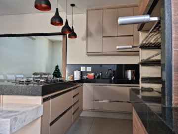 Sala de Estar e Jantar, Lavabo, Cozinha Gourmet Completa, Área de Serviço, 3 suítes, sendo a master rica em armários Piscina, Vestiário e 4 Vagas de Garagem