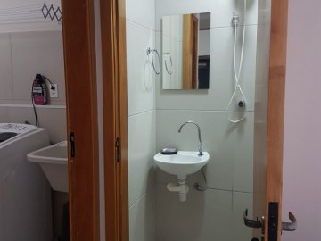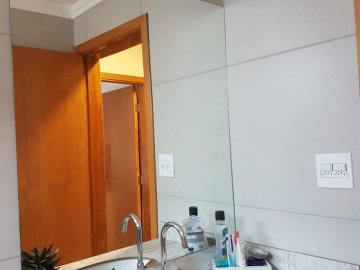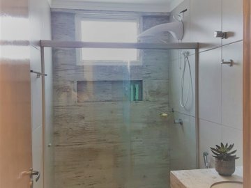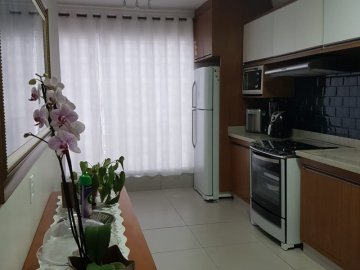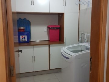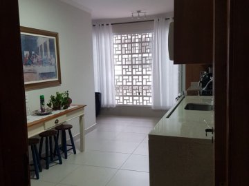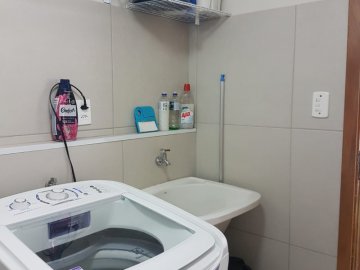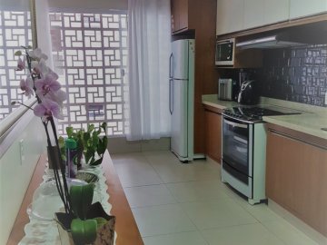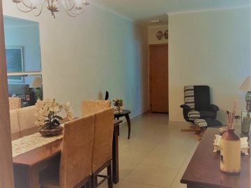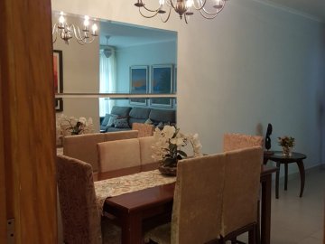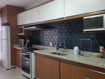 Com 3 dormitórios, 2 deles com ar condicionado - sala dois ambientes - ampla cozinha planejada - 1 banheiro social e 1 lavabo - lavanderia - ventilador de teto - não tem garagem, no quarteirão da frente tem um estacionamento 24h.