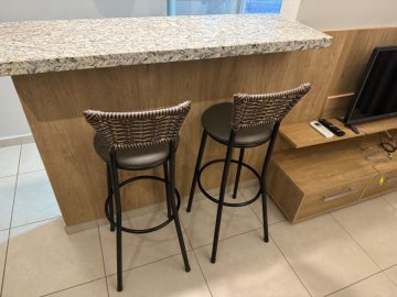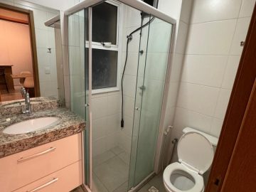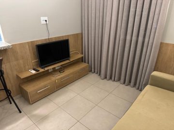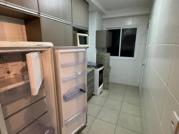 1 dormitório, sala 2 ambientes com sacada, cozinha americana com lavanderia e banheiro social. Completo em armários, roupeiro, ar condicionado inverter na sala e no quarto, fogão, geladeira, microondas, sofá, rack, TV smart 32", mesa com 4 cadeiras, cama box, chuveiro, espelho, cortina, iluminação em trilho e luminárias. 1 vaga de garagem coberta.