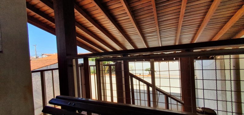 Parte superior: Casa com 3 dormitórios sendo 1 suíte - sala dois ambientes - cozinha - 6 banheiros no total - 1 lavabo - varanda - quintal - 16 câmeras de segurança - cerca elétrica - alarme - 2 portões eletrônicos - garagem para 4 carros sendo 1 coberta. Ligação de água e energia separadas. Piso cerâmica.