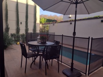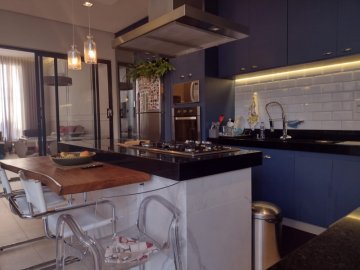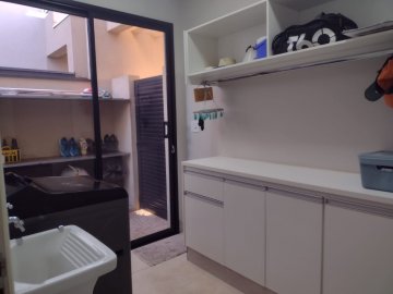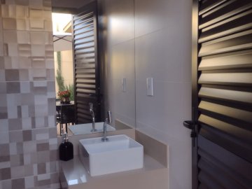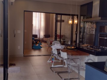 Sendo 3 suítes, com closet na suíte master, sala dois ambientes com pé direito alto, cozinha planejada integrada com a varanda gourmet, piscina, vestiário, rica em iluminação, armários em todos ambientes, churrasqueira, roupeiro no corredor, lavabo, ampla área de serviço e garagem para 4 carros.