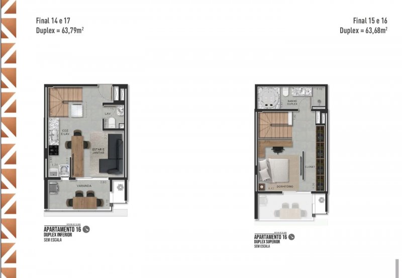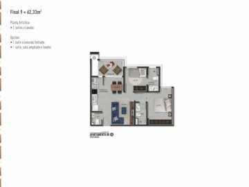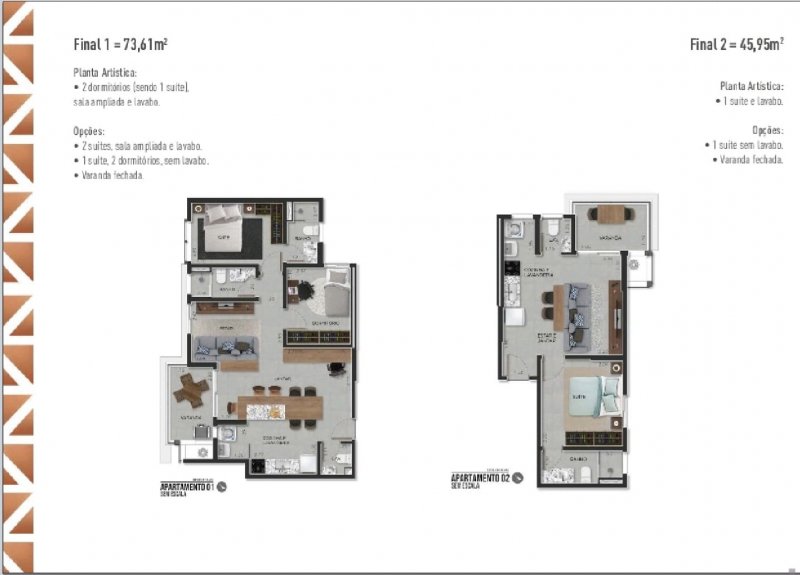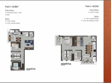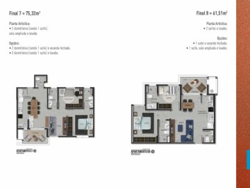 Apartamentos de 46m² a 75m², 1 suíte, 2 suítes, 3 dormitórios (1 suíte), todas as opções de plantas contemplam lavabo.