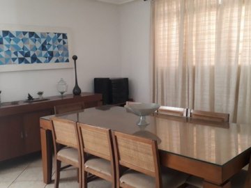 Térreo: sala três ambientes - escritório/sala íntima - cozinha planejada - rica em armários - área de serviço - 8 banheiros no total - dependência de empregada - área de lazer com churrasqueira, piscina com cascata, sauna e banheiro - garagem para 5 carros.