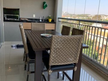 Sendo 3 suítes a master com closet e climatizados - sala dois ambientes - varanda gourmet com fechamento em vidro - cozinha planejada - área de serviço - vista panorâmica - rico em armários - 2 vagas de garagem.