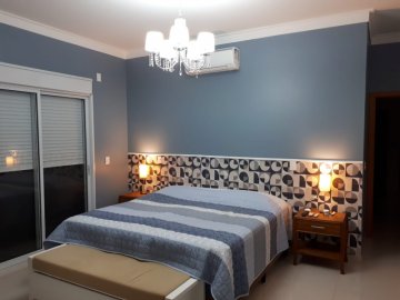 3 SUÍTES AMPLAS SENDO UMA MASTER COM CLOSET, JANELAS E PORTA DORMITÓRIOS BLACK-OUT E AUTOMATIZADAS, ROUPEIRO, SALA AMPLA COM PÉ DIREITO DUPLO, ESCRITÓRIO, LAVABO, COZINHA PLANEJADA COM DESPENSA, ESPAÇO GOURMET COM CHURRASQUEIRA E COOKTOP A GÁS, LAVANDERIA.