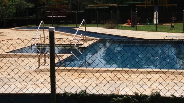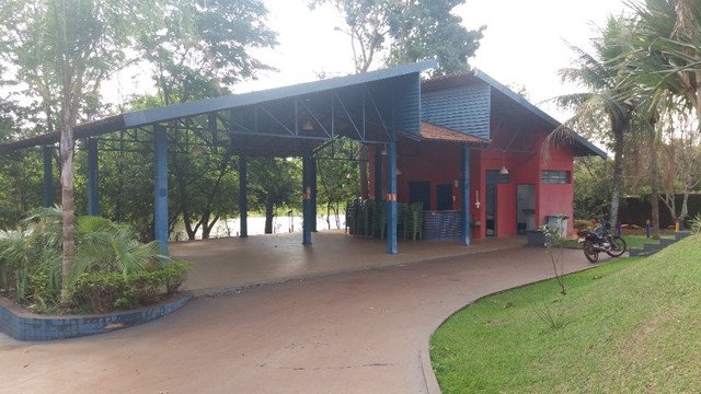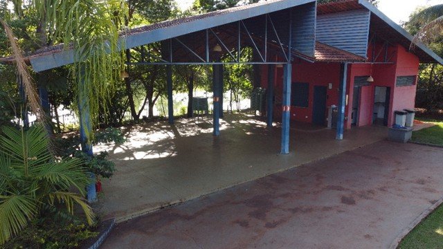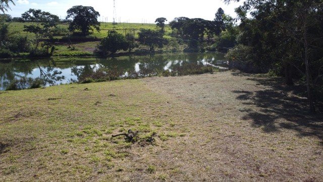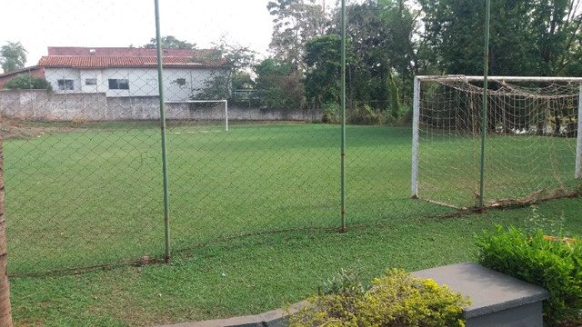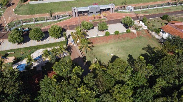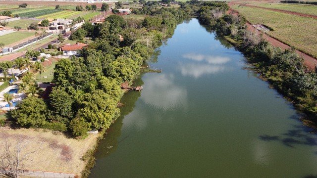 Condomínio com área de lazer, portaria 24h, piscina, campo de futebol, salão de festas, playground, lago para pesca, pier.