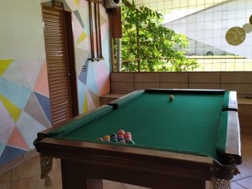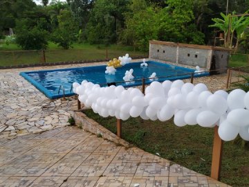Com 4 dormitórios sendo 2 suítes com sacada e ar condicionado - sala com TV e banco em L de alvenaria revestido - cozinha planejada - área externa 10m x 10m, aberta, cimentada, com acesso para cozinha e sala - salão 10m x 11m com TV, banco em L de alvenaria revestido, palco, bilhar, luz e som - internet - forro anti térmico - depósito para equipamento -piscina aquecida (elétrica e solar) 5,5m x 9m com área revestida em pedras (3m ao redor da piscina) - piscina infantil - campo de futebol gramado - muro 2m de altura.