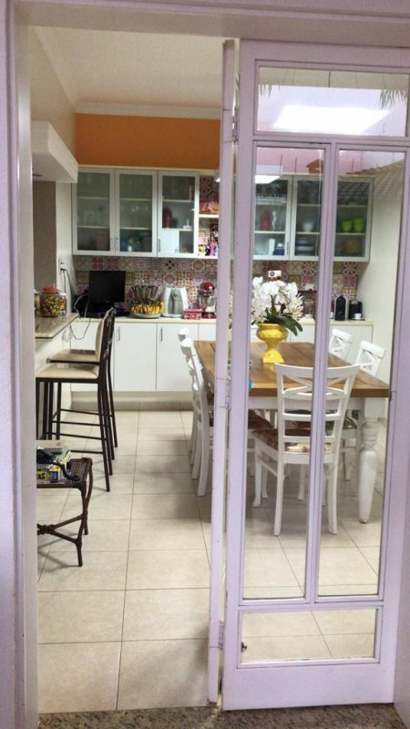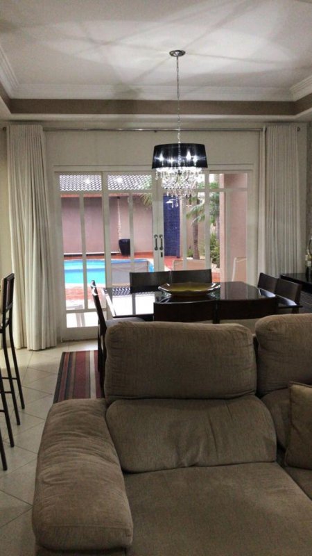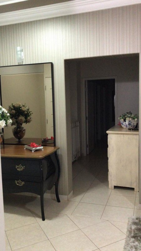 Sala (climatizada) com 2 ambientes, banheiro social, lavabo, escritório, sobrado rico em armários, Hall de acesso aos quartos, roupeiro, 03 dormitórios, sendo 1 suíte (Completos em ármarios e climatizados), 4 vagas de garagem.