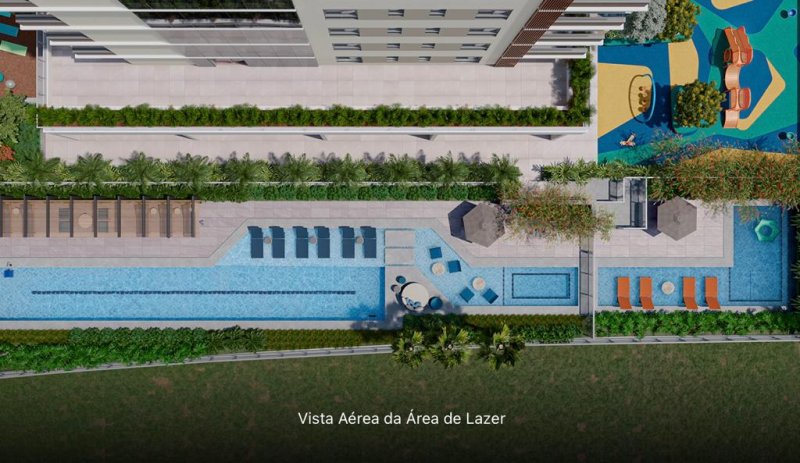 Área de lazer completamente decorada: academia, studio de pilates, spa, sauna seca, salão de festas, lounge jogos, brinquedoteca, playground, quadra poliesportiva, espaço gourmet, praça de apoio, fitness outdoor, piscina adulto e criança e family place.