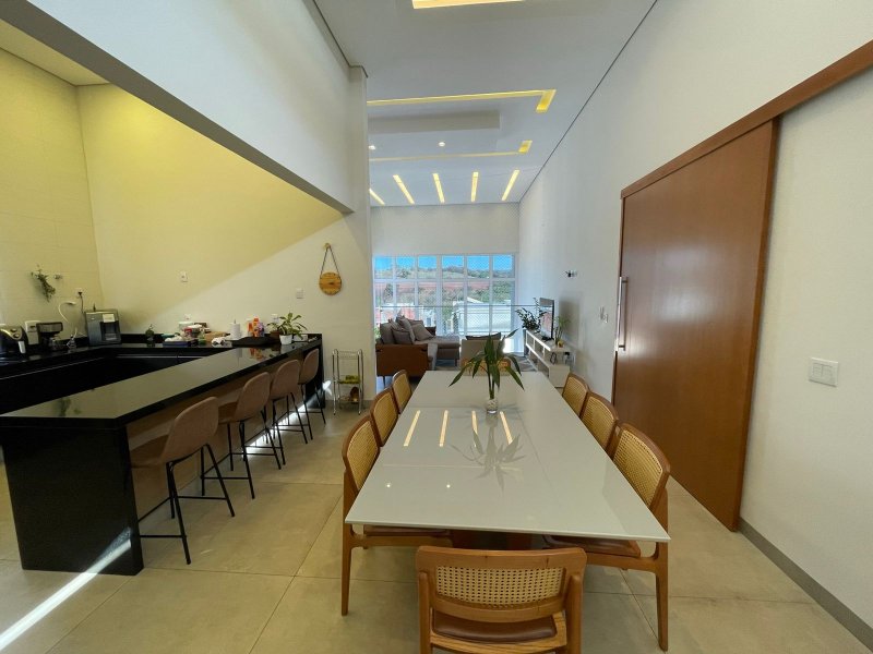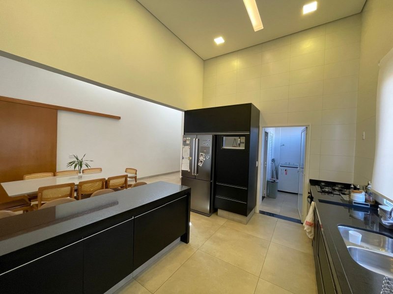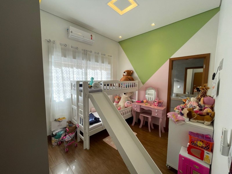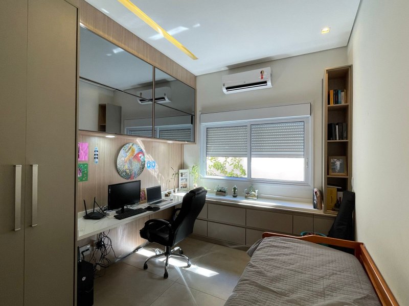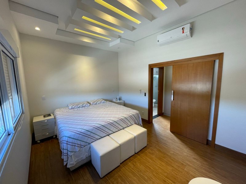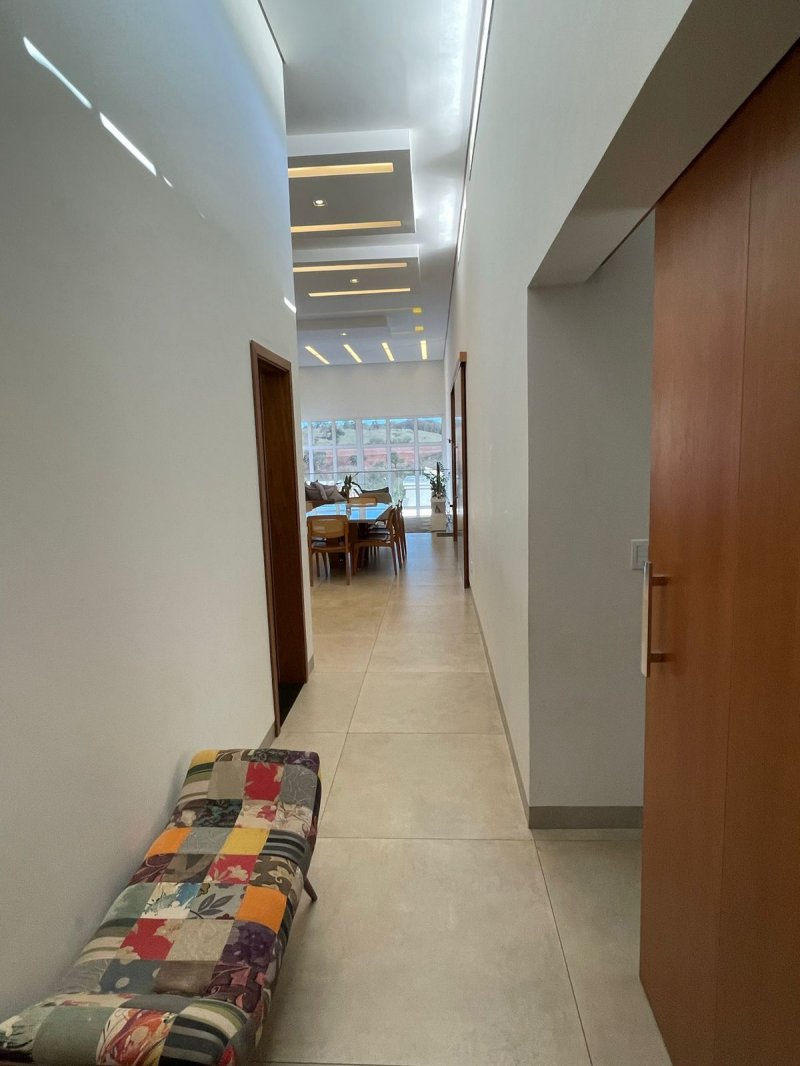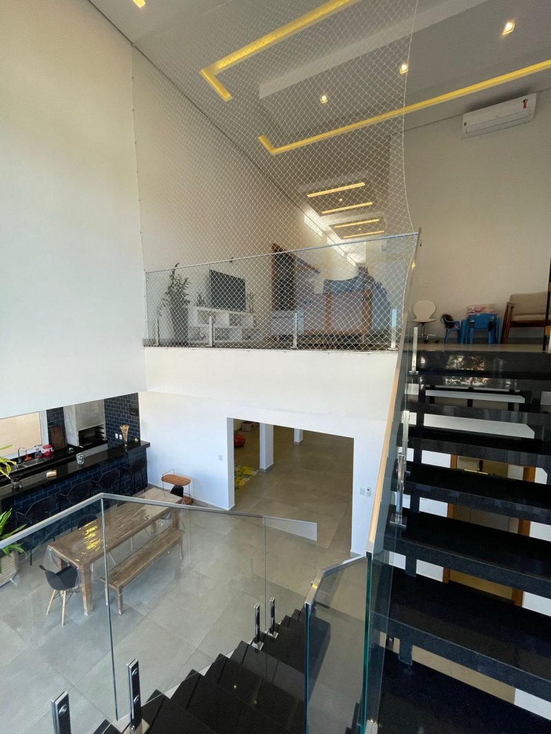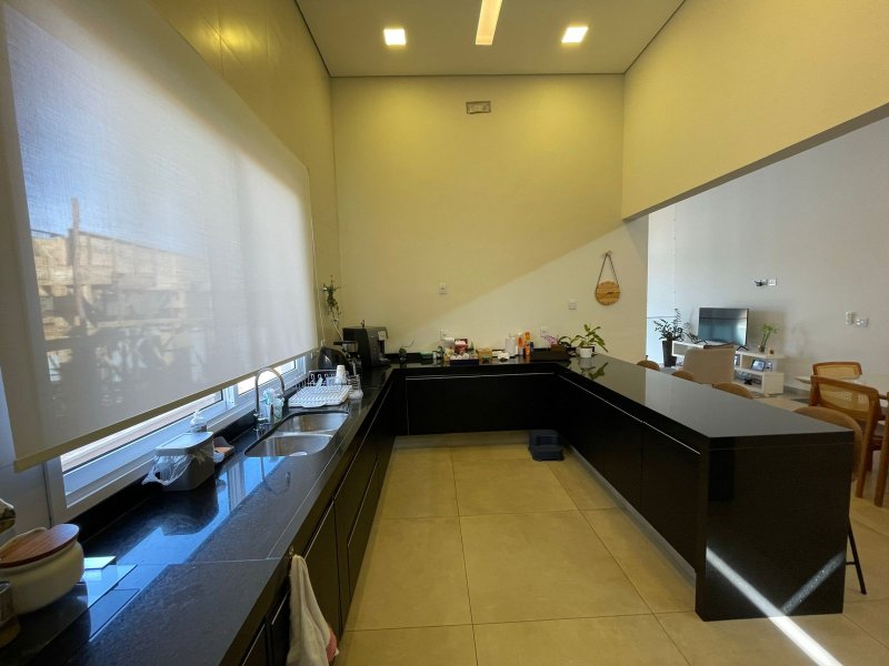Sendo 3 suítes e um escritório reversível para uma 4 suíte - salas 3 ambientes - cozinha completa em armários - despensa - lavanderia - área gourmet com churrasqueira e piscina aquecida - ar condicionado em todos os ambientes - persianas automatizadas - energia fotovoltaica - fosso preparado para elevador - pomar - garagem para 4 carros.