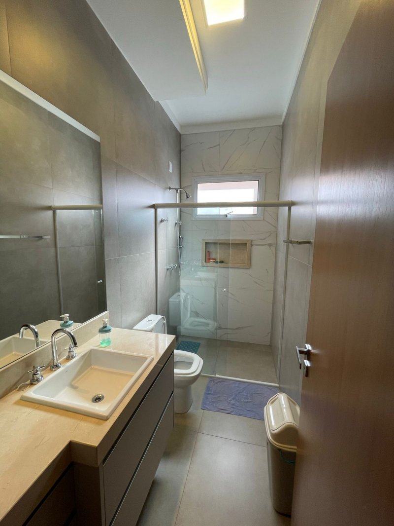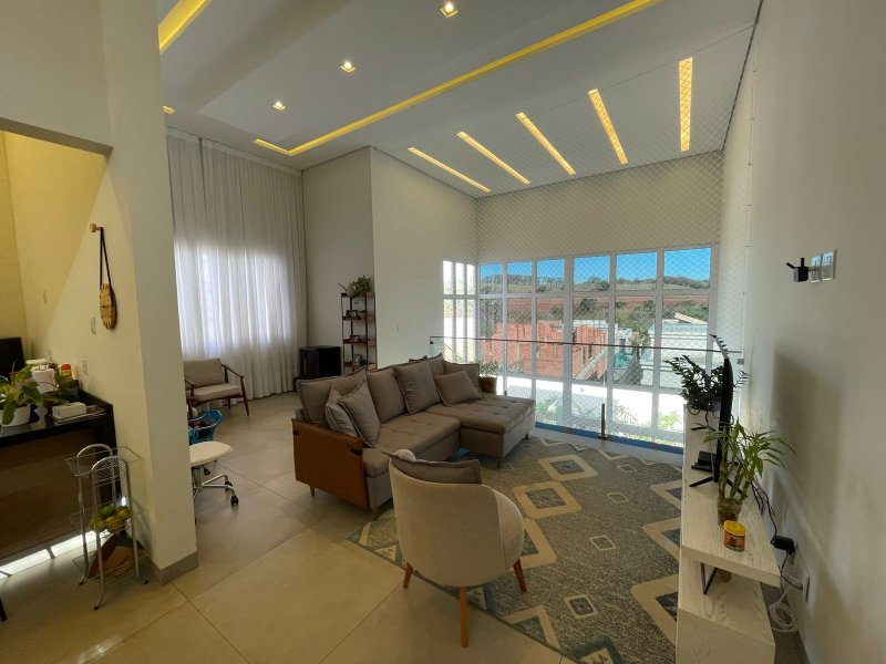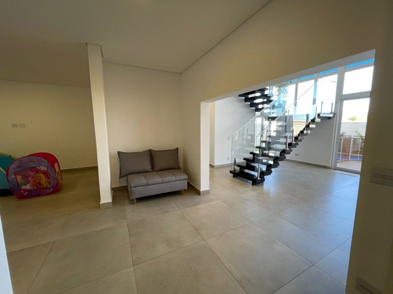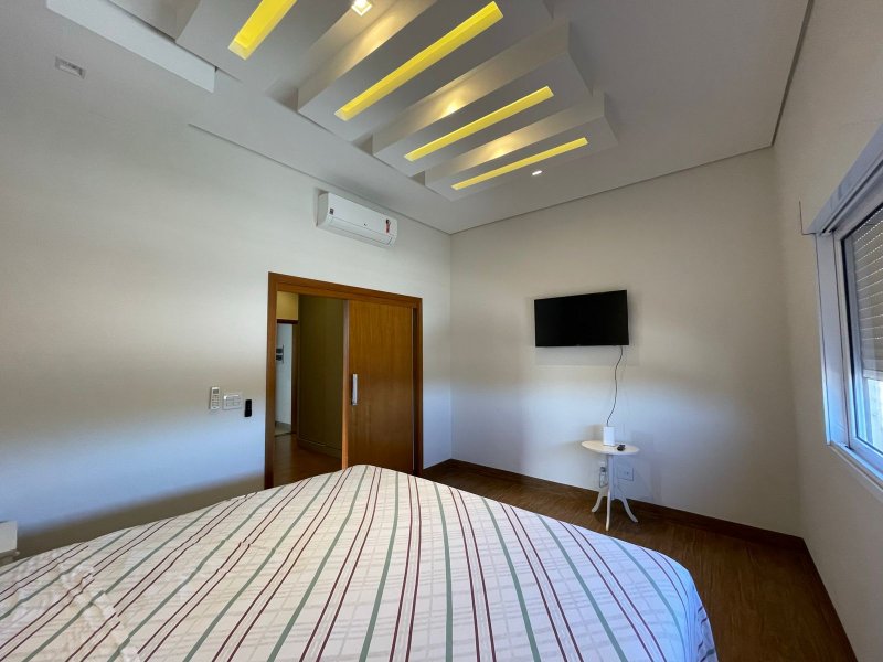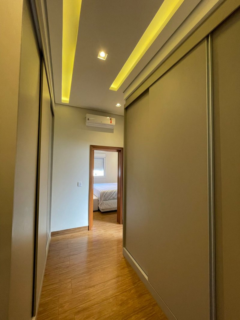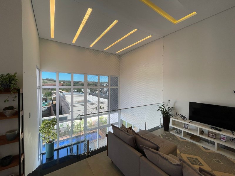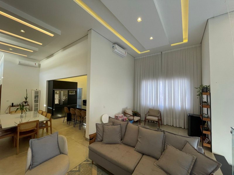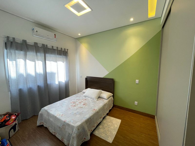 Sendo 3 suítes e um escritório reversível para uma 4 suíte - salas 3 ambientes - cozinha completa em armários - despensa - lavanderia - área gourmet com churrasqueira e piscina aquecida - ar condicionado em todos os ambientes - persianas automatizadas - energia fotovoltaica - fosso preparado para elevador - pomar - garagem para 4 carros.