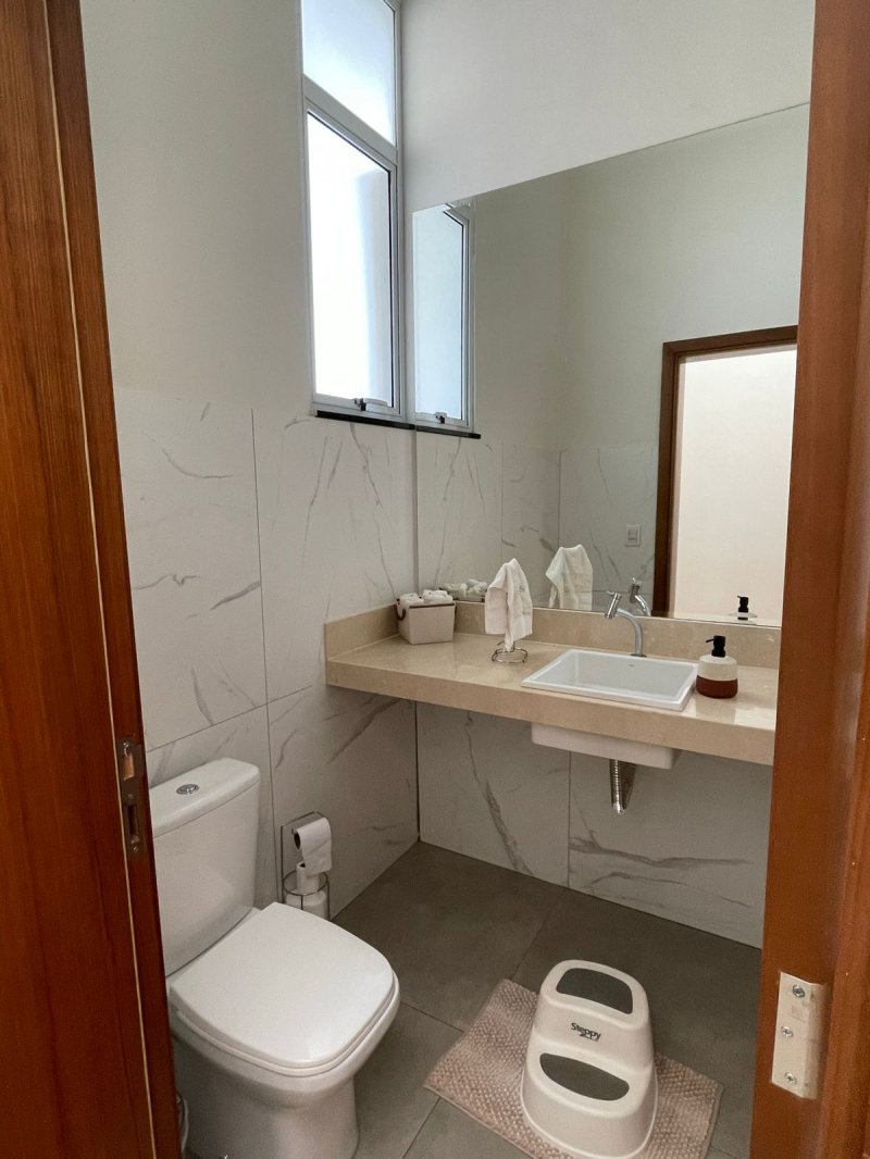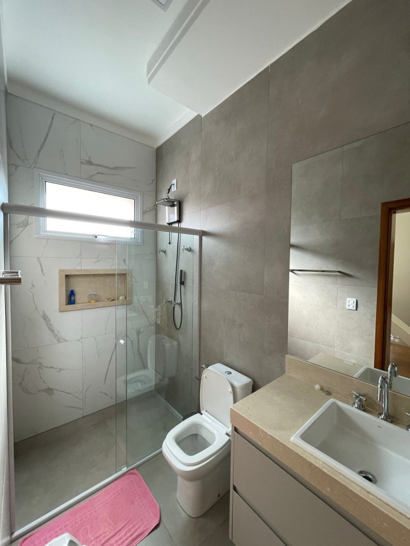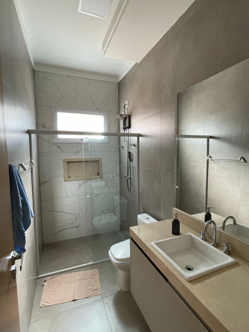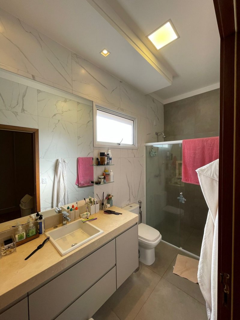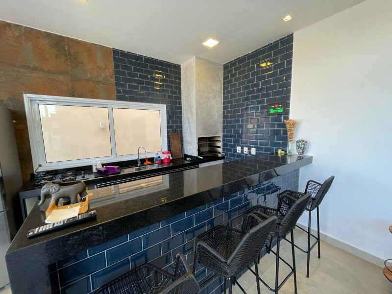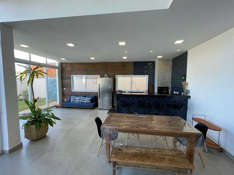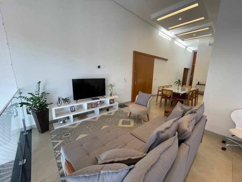 Sendo 3 suítes e um escritório reversível para uma 4 suíte - salas 3 ambientes - cozinha completa em armários - despensa - lavanderia - área gourmet com churrasqueira e piscina aquecida - ar condicionado em todos os ambientes - persianas automatizadas - energia fotovoltaica - fosso preparado para elevador - pomar - garagem para 4 carros.