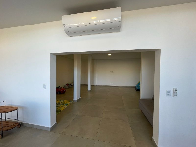 Conta com um espaço que pode ser revertido em uma sala de cinema ou um salão de festas e jogos.
