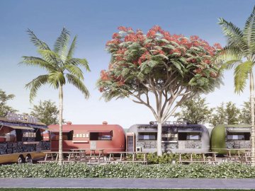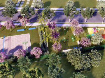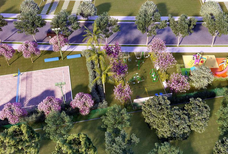 As palmeiras imperiais, os traços neoclássicos e os itens que compõem o projeto fazem do Riviera Village um lugar bucólico e perfeito para se viver.