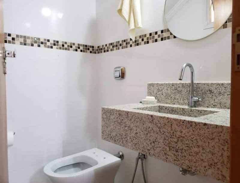3 suítes sendo 2 superior e outra inferior - sala dois ambientes - lavabo - cozinha planejada com cooktop, forno elétrico embutido e integrada a varanda gourmet - despensa - pedras em granito - armários e painéis em todos os dormitórios - aquecedor solar - água quente em todos os banheiros, cozinha e área gourmet - ar condicionado Midea Springer - garagem espaçosa para 4 carros sendo 2 vagas cobertas.