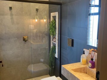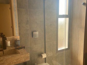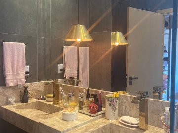 4 suítes, sendo 3 em cima e uma em baixo (Banheiro da Suite Reversivel para lavabo