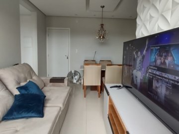 Apartamento medindo 53m2, com 2 dormitórios, banheiro social, sala com sacada, cozinha e lavanderia. Armários nos dois dormitórios, banheiro e cozinha, está com gesso em todo o apartamento e cortinas na sala e quarto. 02 Vagas de garagem.